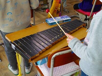 2年生が音楽の時間、鍵盤ハーモニカと木琴で合奏に挑戦していました。