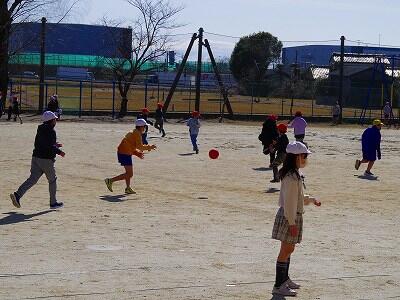 今日のお昼休みは、風が吹いていましたが、みんなはドッジボールや鬼ごっこ、鉄棒、シーソー等、思い思いに楽しんでいました。