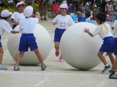 2年生も、1日よく頑張りました。50m走、タッタのダンス、大玉ころがしととてもいい1日に