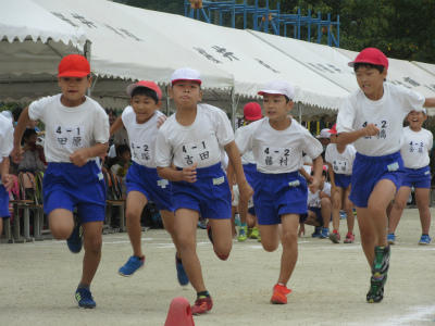 4年生も、1日よく頑張りました。80m走、ソーラン節、お助け綱引きとすごい頑張りを見せてくれました。来年は、高学年の仲間入りですので、頑張ってください。