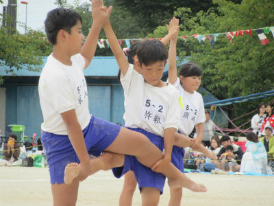 5年生も、高学年としてよく頑張っていました。100m走、騎馬戦、組体操とすごく感動しました。6年生とともに、1日よく働いてくれました。