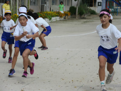 昼休みに、紅白対抗リレーをしていました。男子の部と女子の部に分かれて行います。1年生からのスタートで、アンカーが6年生になります。4チームの対抗がとても楽しみです。