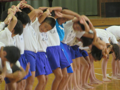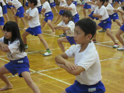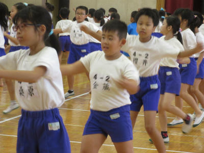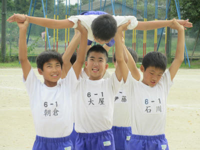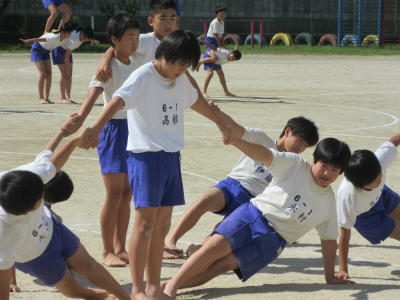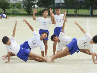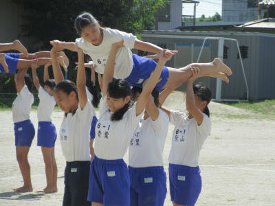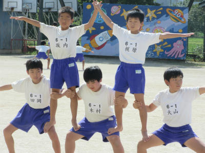 5年生と6年生の組体操が、ほぼ完成しました。音楽に合わせて、最後まで演技することができました。とても頑張って仕上げていたようです。