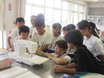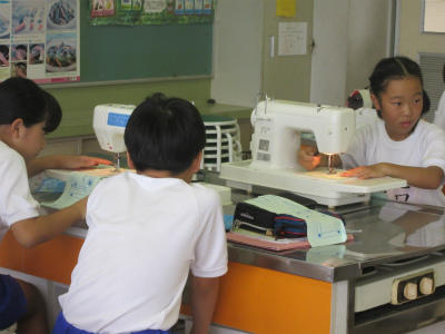 5年生がミシンの学習に入りました。今日は、練習布で空縫いをしていました。糸を通していなかったので、みんながスムーズにできていました。