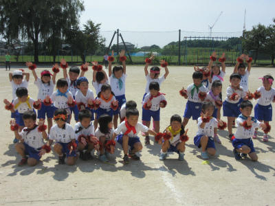 ダンスの『タッタ』の練習をしていました。今日は、首にバンダナを巻いて、手首にキラキラのテープをつけて頑張っていました。とてもかわいかったです。