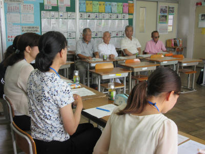 南小教育懇談会が、地域の方々を招いて話し合いを持ちました。あいさつや学習の準備、はき物をそろえることや家の手伝い等について話し合いました。いっぱい地域の方から褒められました。