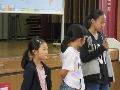 児童代表の言葉も、4年生が代表で行いました。2学期の運動のことや学習のことを頑張りたいという力強い決意でした。特に持久走大会で、上位を狙うという決意でした。
