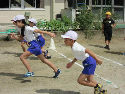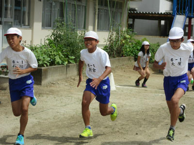 5年生も6年生も、50m走をやっていました。紅白どのチームになるか、とても楽しみですね。6年生は、小学校生活最後の運動会ですので、しっかり頑張ってください。