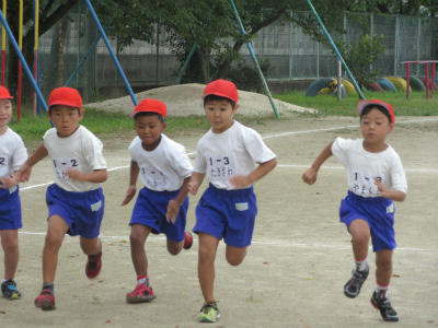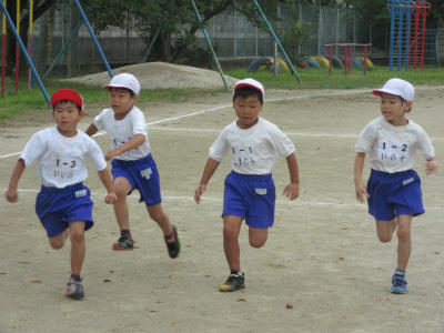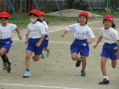 1年生がリレーの選手を決めていました。紅白とも、しっかりゴールまで走って、頑張っていました。選手の人は、当日しっかり走ってください。