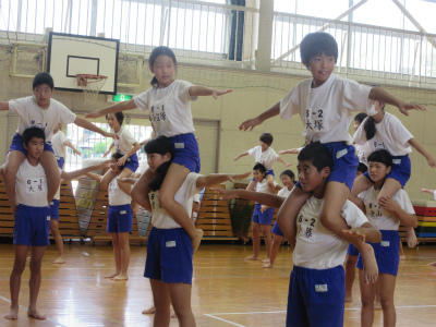 5年生・6年生の組体操の練習が、先に進みました。2人組の技が1つ1つ完成していきました。どんどん、できあがっていくのがとても楽しみですね。