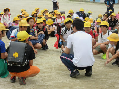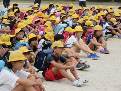今日の朝は、全学級避難訓練の避難のしかたについて指導しました。いつ起こるか分からないのが災害です。いざというときに備えて、しっかり頑張ってください。