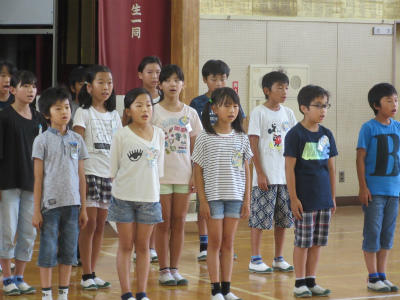第1学期の終業式がありました。長かった1学期も、今日で終わりです。緊張と嬉しさでいっぱいの顔をしていました。校長先生からは、42日間の夏休みを有意義に過ごしてください。というお話がありました。