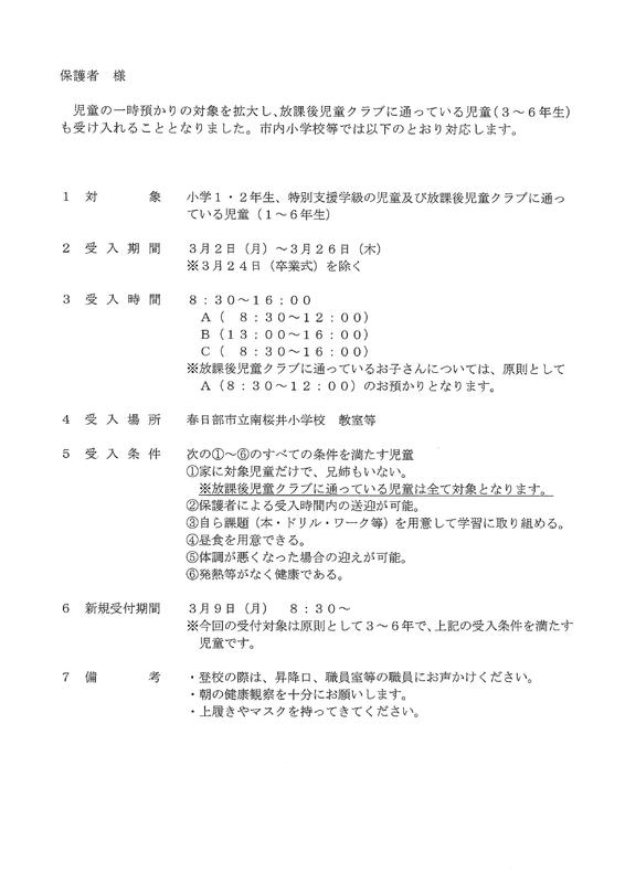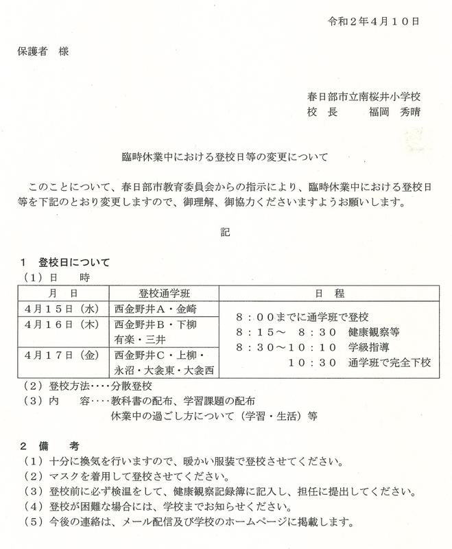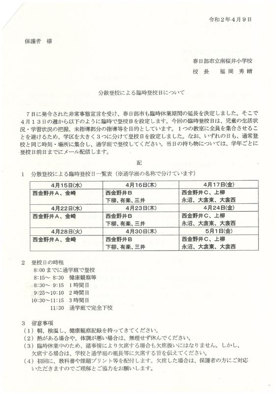 令和2年3月19日 保護者 様 春日部市立南桜井小学校 校 長 舘野 俊之