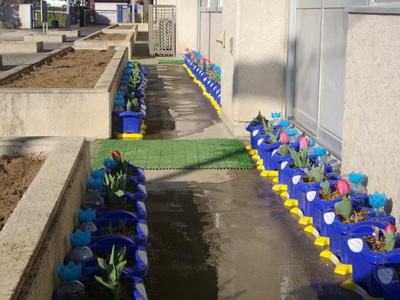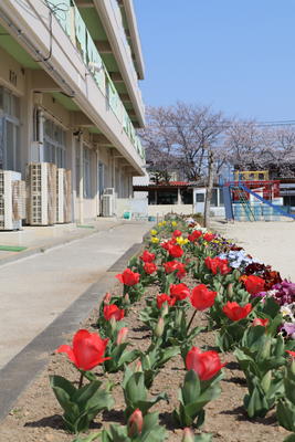 いつもと変わらぬ時間に、1年生が大切に育てているチューリップに