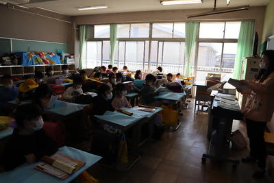2年生は国語の時間に詩の学習をしていました。音読の工夫ということで、声を小さく読んだり、楽しそうに読んだりしながら工夫して音読をしていました。
