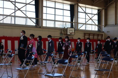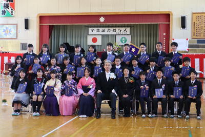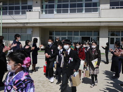 先生たちと保護者の皆様に送られて 南桜井小学校を巣立っていきます
