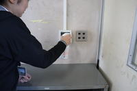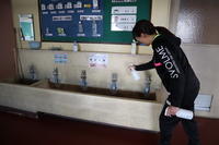 現在は、そうじをしていないので、先生方が簡単清掃を行っています。また、スイッチやドアノブ、手すり、取っ手、机やいすなどを次亜塩素酸ナトリウムに浸した雑巾を使ってふき、さらに別の雑巾でふくという2度拭きで行っています。