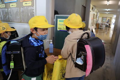 分散登校が始まり、新しいメンバーで元気に登校しています。