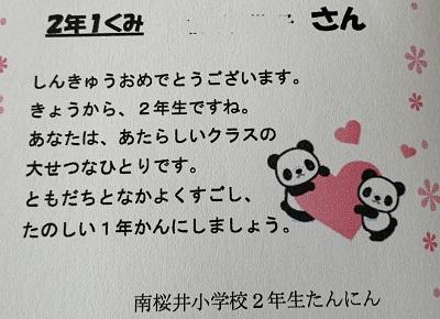 「中学校へ行っても頑張ってください」「南桜井小学校はいつもみなさんを見守っています」