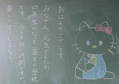 今日から、全員が登校しました。3,4年生は、欠席者0。その他の学年も欠席者が少なく、ほとんどの子が登校しました。うれしいですね。