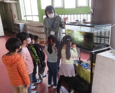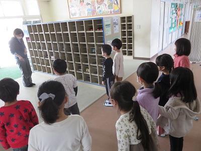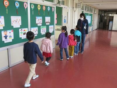 1年生が1,2校時をつかって学校探検をしました。教室を出て、廊下を静かに歩きながら、職員室や保健室、給食配膳室、図書室、体育館等々を見学しました。後日、グループで自由に再探検を予定しています。