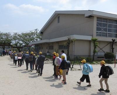 今日は、第一次行動までの訓練でした。避難経路については、各クラスごとに実際に校庭に出る出口まで行って、避難するルートの確認を行っています。