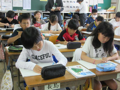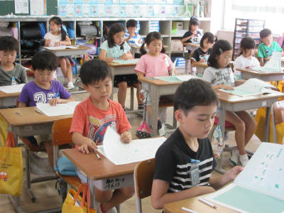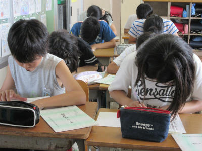 2年生と4年生が集中して、知能テストに励んでいました。1つ1つ問題をしっかりつかんで取り組んでいました。