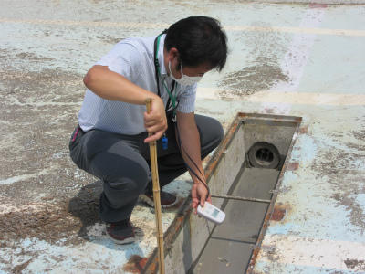 明日、6年生がプール掃除をしてくれます。すっかり水を抜いて、洗うばかりになりました。今日、放射線の測定もきちんと行いました。