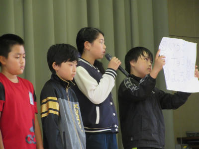 運動委員会は、活動の内容を1人1人が分担して、発表していました。よ~く分かる発表でした。朝から、よく頑張っていました。