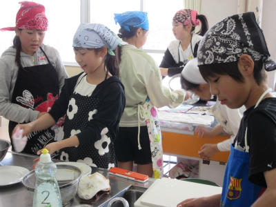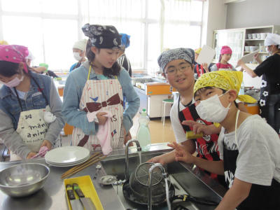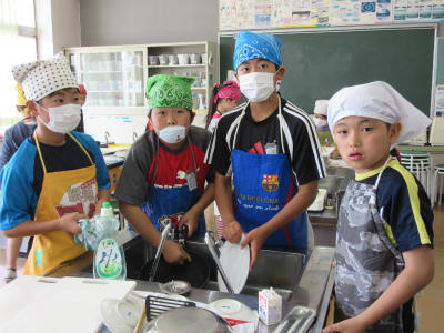 6年生が3食野菜の調理とたまごを使った料理をしていました。2年目の家庭科なので、ちょっと慣れているようでした。