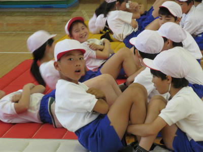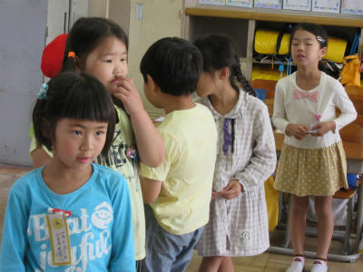 今日のロングの昼休みは、なかよしタイムの第1回目でした。初めて、新しいグループが顔を合わせます。6年生が、1年生の面倒をよくみていました。
