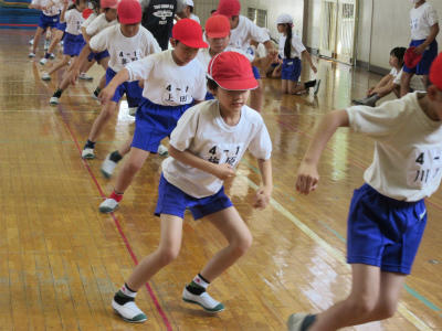 新体力テストの体育館バージョンを行いました。上体起こし・反復横跳び・握力・長座体前屈などをやっていました。いい記録が出るといいですね。