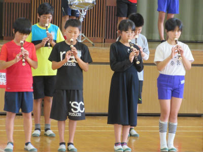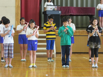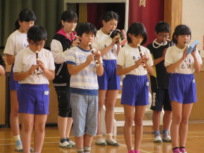 6年生の2クラスが、市内音楽会に向けて、オーディションを行いました。1組も2組も、合奏を真剣に取り組んでいました。