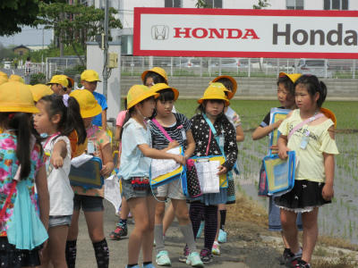 神社の休憩を終えて、南側の方にまわって来ました。田んぼが多く、用水路もあり、車が来ると避難するのに大変でした。ぐるーっと1周してきて楽しかったです。