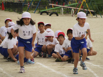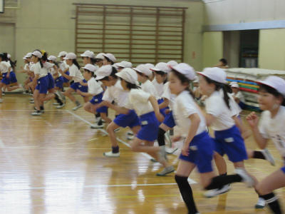 3年生がシャトルランの練習をしていました。男女に分かれて、ペアーを組んで行っていました。みんなが頑張り、最高の児童は45回をこえるくらい走っていました。