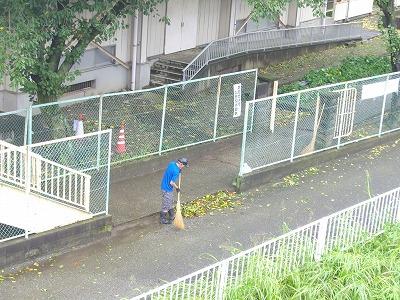 台風が通過したのち、全職員で環境整備、登校見守りを行いました。