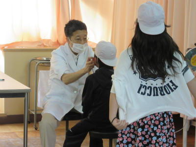 4年生・5年生・6年生が視力検査をしました。ていねいに検査してくれました。南小の子は、とても素直でいいとほめられました。