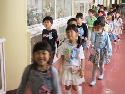 1年生が担任の先生と一緒に学校探検を行っていました。1年生は、第2校舎にいますが、今日は、第1校舎の方まで来て、しっかり探検していました。