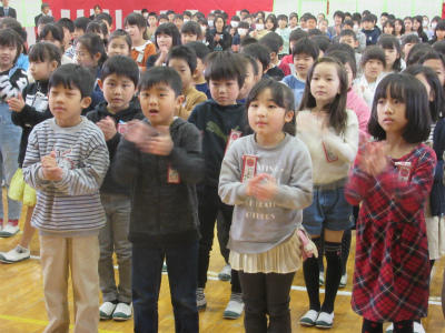 児童代表の言葉は、1年生でした。1年間頑張ったことをしっかり述べていました。駐在所の方からも、春休みの注意をいただきました。気をつけて12日間、過ごしてください。
