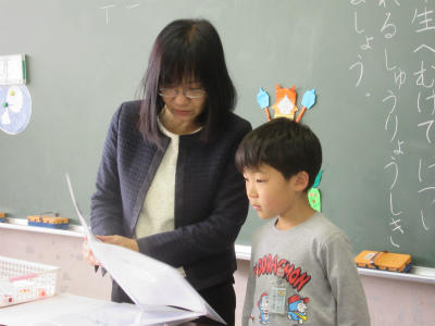 1年間、お世話になった先生方に、手紙を書いてお礼をしていました。算数や音楽、書写でお世話になった先生方にも、しっかりお礼が言えてようです。