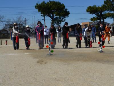 職員は、消化器を使った消火訓練、2年生、4年生は、煙体験を行いました。