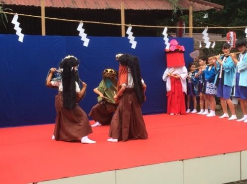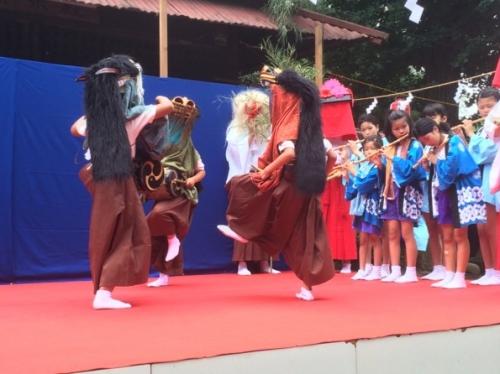 庄和こばと幼稚園で行なわています、西金野井東地区納涼祭に、伝統芸能クラブ児童が参加して、獅子舞を披露しています。