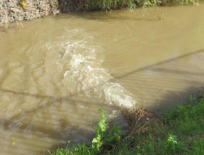 突然、堰を切ったかのように水が流れ始めました。そして、用水路の方では水しぶきが!どうやら、排水溝が詰まっていたようです。おかげで、その後、2時間ほどで水が引き、水たまりは消えました。