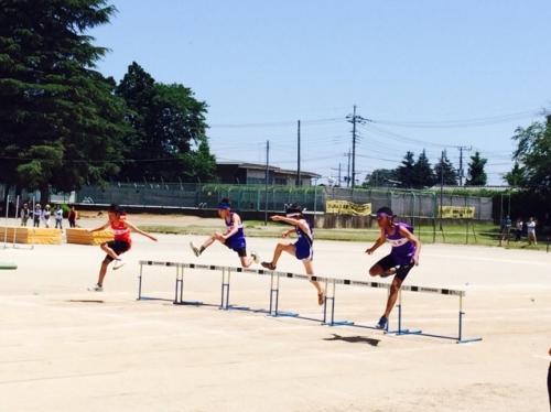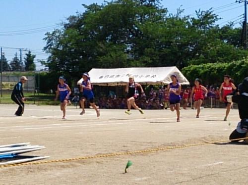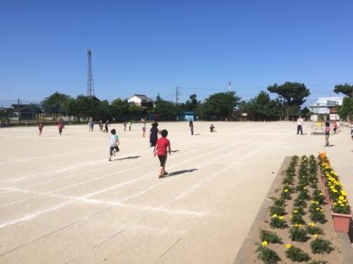風が強いですが、リレー頑張っています。教育実習生も入り走ります。