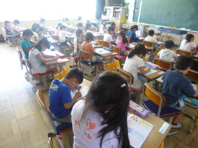 1年生、2年生、姿勢をよくして、課題に取り組んでいます。