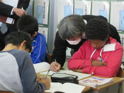 教室に帰ったあとは、お待ちかねの通知表の配付でした。1人1人に、2学期頑張ったことを加えながら、渡していました。いい成績がとれましたね。ろう下で静かに渡している先生もいました。