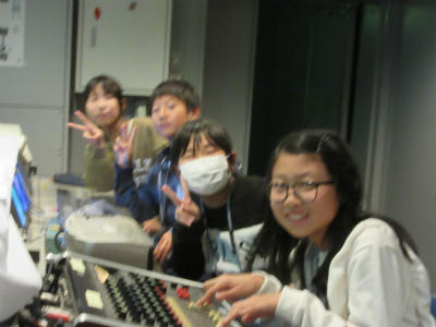 午後は、2組がTV番組制作体験に行きました。2つに分かれての、集団行動で番組を作りました。何回か、練習をして行ったので、とても上手に進行することができました。