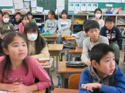 3年生も、集中してしっかり聞いていました。読み聞かせで、語ってくれるのがうれしいようです。お話をよく聞いて、想像を膨らませてください。