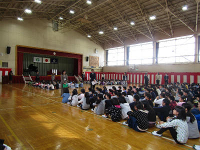 入学式の準備が整いました。最後まで、会場準備に清掃に、6年生は大活躍。