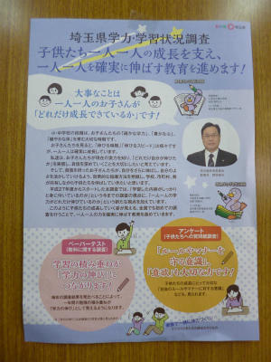 4年生から6年生を対象に、埼玉県学力・学習状況調査が行われます。